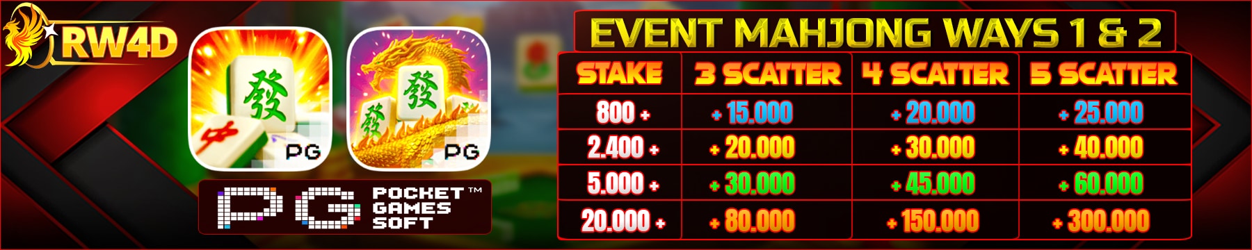 3. Event tidak berlaku untuk permainan yang memiliki fitur RESPIN, jackpot seperti MINI MAJOR & GRAND